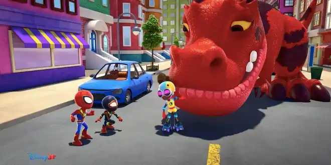 Das Spidey-Team arbeitet mit Moon Girl und Devil Dinosaur zusammen, um den Robo-Dino des Grünen Kobolds aufzuhalten! (Text: Disney Channel)