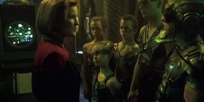 Borg-Kinder, die von den Borg als unwürdige Drohnen abgelehnt wurden, entführen Chakotay, Kim, Neelix und Paris.