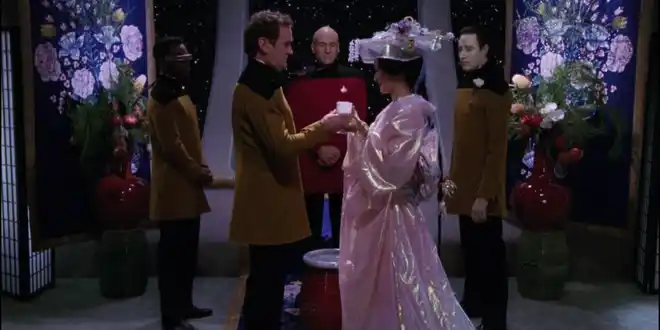 Data bereitet sich auf die Hochzeit von Chief O´Brien vor, für die er unter anderem von Dr. Crusher Unterricht im Steptanzen erhält. Währenddessen beamt eine vulkanische Botschafterin zu Geheimverhandlungen mit den Romulanern an Bord. Während dem Beamen kommt sie dabei ums Leben.